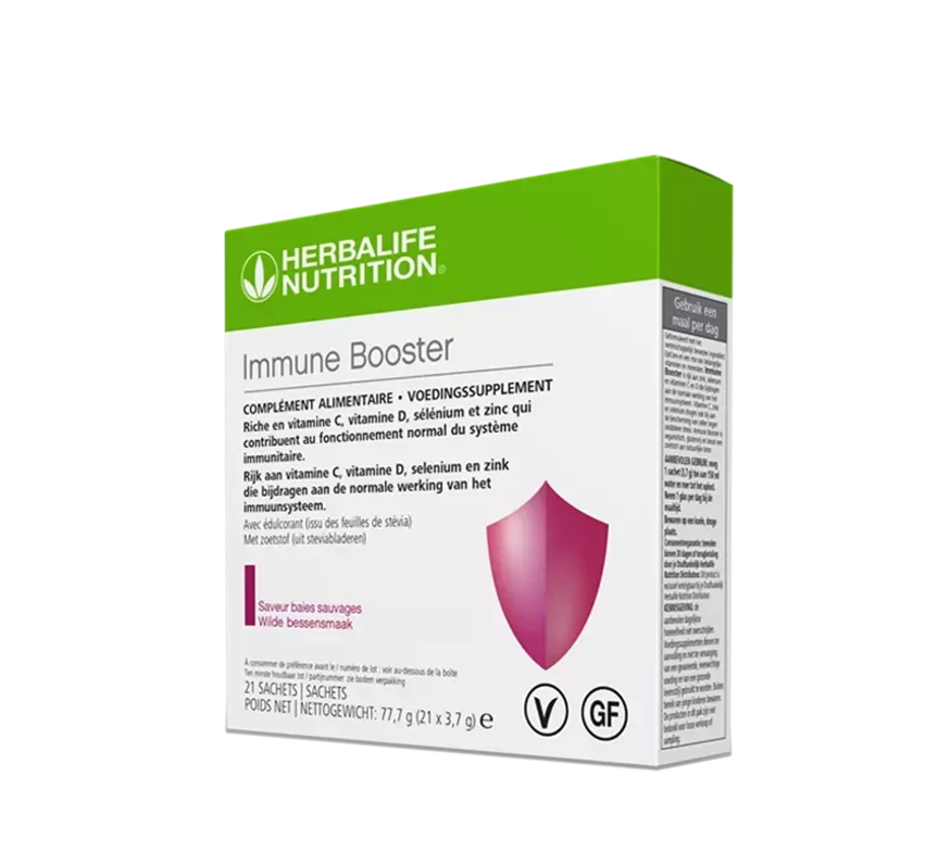 Maltodextrine, fermentat de levure sec Epicor® (élaboré à partir de Saccharomyces cerevisiae), poudre de jus de fruit de sureau (Sambucus nigra L.), correcteur d’acidité (acide citrique), épaississants (gomme arabique, gomme xanthane), acide l-ascorbique, arôme naturel, colorant (rouge de betterave), édulcorant (glycosides de stéviol issus de Stevia), citrate de zinc, cholécalciférol, antiagglomérant (dioxyde de silicium), sélénite de sodium.